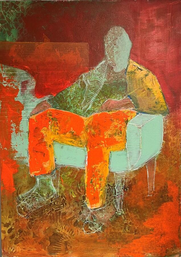Kristel Pallemans "Man in zetel" doek 100x80cm.